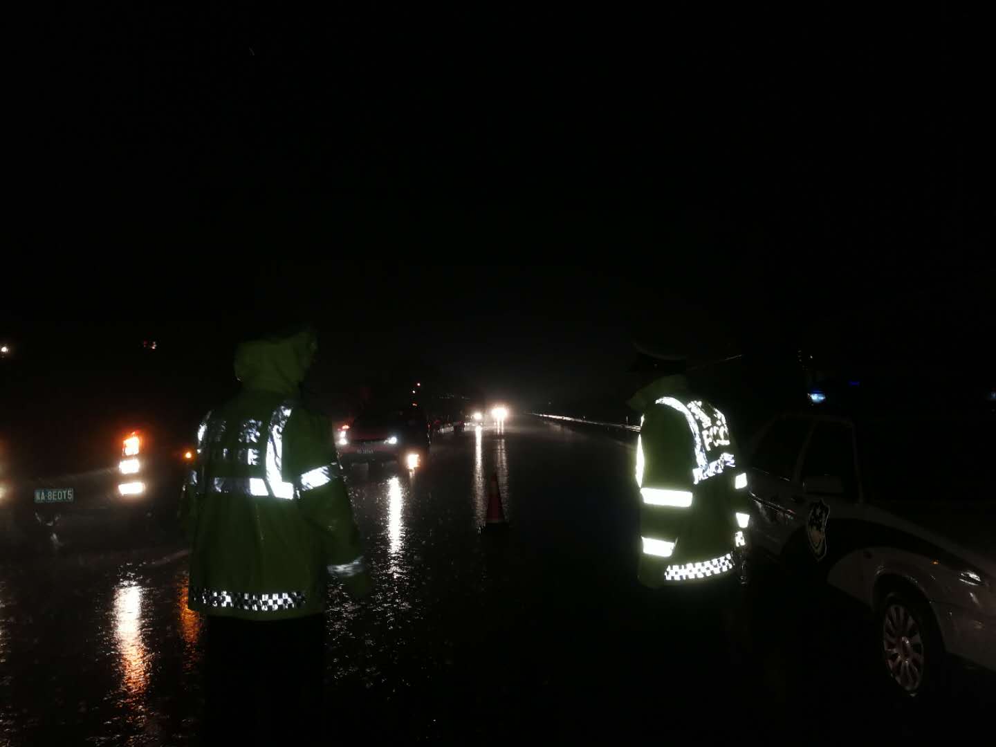 4月21日,濮阳辖区普降大雨,雨大路滑,事故易发,濮阳高速交警支队及时启动恶劣天气应急预案,对大广高速豫冀界西半幅实行了临时交通管制,支队民警王元杰带领辅警韩壮、吴敬宾在省界执勤。